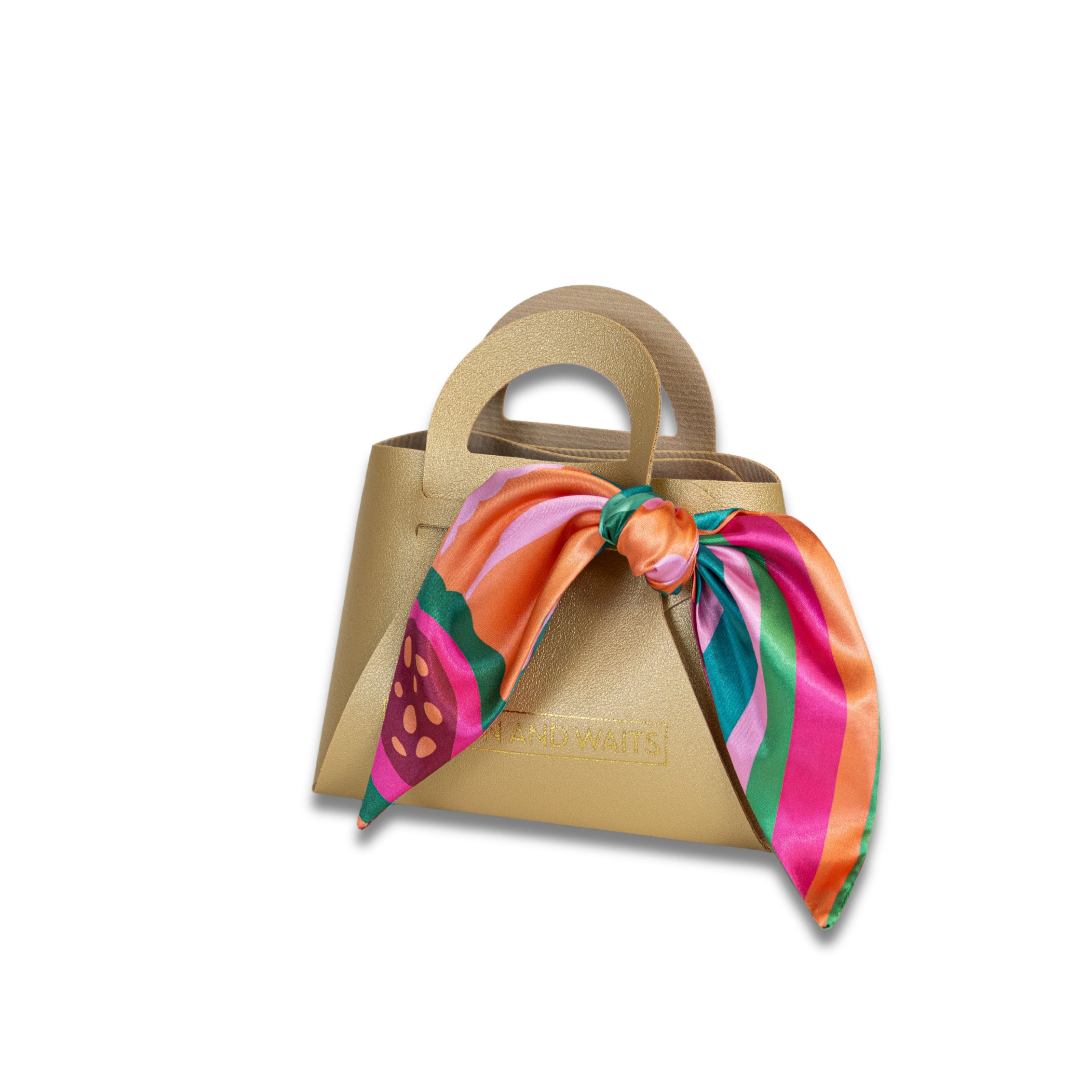 Packaged in a giftable mini WW branded bag. Each scarf comes with a QR code for styling videos.