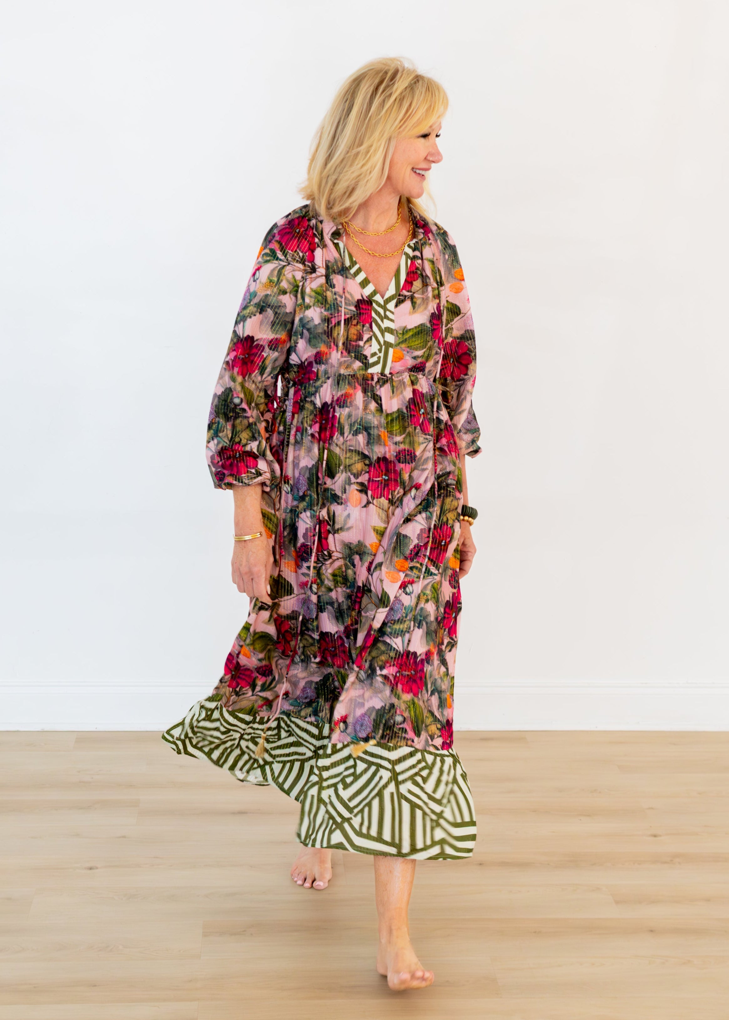Flattering on nearly every body shape, this dress features an empire-style waist with generous room through the bust - comfortable, elevated and endlessly wearable.